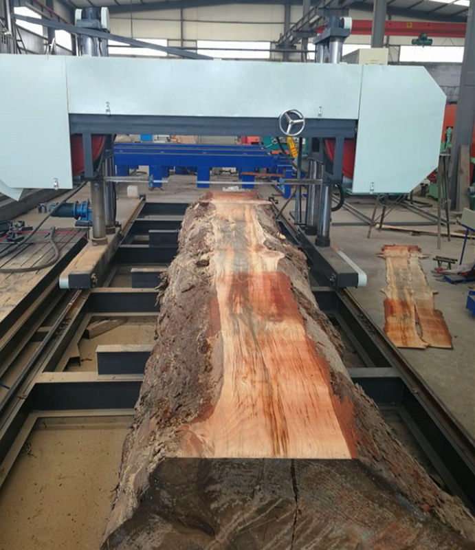 | Elektrikli Şerit Testere Bıçağı Germe Sonsuz değişken ileri ve geri hızlar Dokunmatik Ekran kesme kalınlığı ayarı Hızarhane üzerine inşa edilmiş Kontrol Kabini ve Koltuklar 4 grup Mobil kart ahşap dosya. |